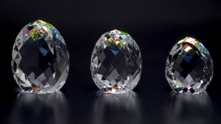 虹色に光るフルーツカット・トロフィーです。フルーツをイメージした多面カット面からガラス内部に光を呼び込みトロフィーの底部に施した特殊蒸着に反射してトロフィー全体が虹色にキラキラ光ります。眺める角度により色も変化します。また、奥行きにボリュームがあり高級感を醸し出しています。
