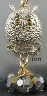 知的で愛くるしく福よかなフクロウに、スワロフスキーの新色;ゴージャスな金色に輝くクリスタルを付けたストラップです。