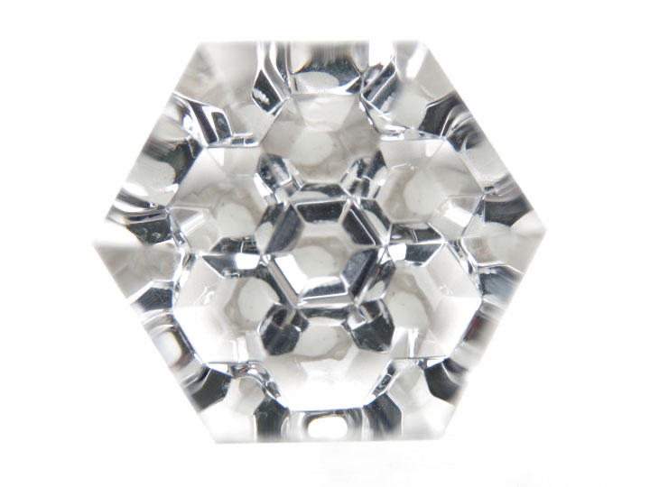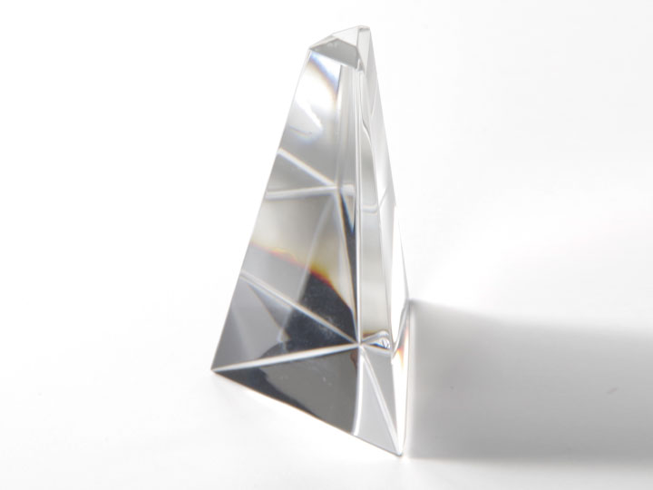 このクリスタル万華鏡は鏡の代わりにガラスの屈折による全反射を利用してシンプルなデザインを実現しています。